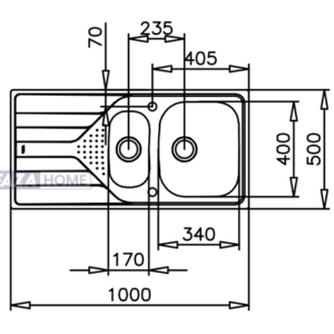 - Stainless steel sink, Polished finish